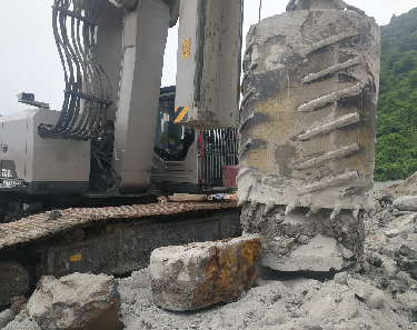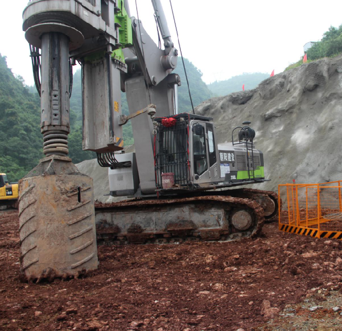 地質(zhì)條件十分復(fù)雜,有雜士、卵石土、大塊石、砂卵石、頁(yè)巖、礫巖、灰?guī)r、溶洞等多種地層,樁端持力層主要有弱風(fēng)化礫巖、弱風(fēng)化泥質(zhì)灰?guī)r和弱風(fēng)化灰質(zhì)頁(yè)巖,旋挖施工鉆進(jìn)有很大難度
